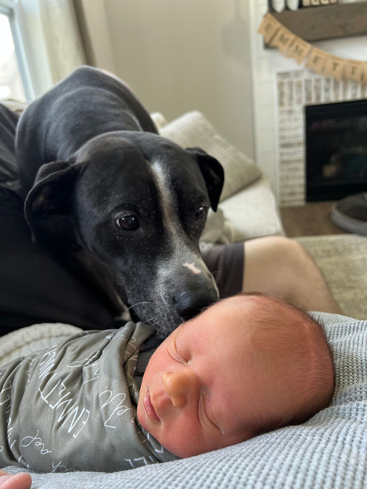 For those of you who don't know, we have two dogs, Charlie and Fiona. Fiona is such an easy going pup, so I was not at all worried about her with Emmett. However, our trouble child, Charlie, likes lots and lots of attention. He also has pretty bad anxiety and needs to establish trust with people before he feels comfortable with their presence, so I was more worried about his reaction to Emmett.